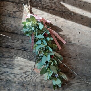 20259/22 10月のLESSONⅡ 2025.09.22 レッスン ~ユーカリのミックスのガーランド~ 何種類かのユーカリをミックスし、 ドライ花材を混ぜながら ガーランドタイプの仕上げになります。 日程:10月11日(土) 10:30~の部 14:00~の部 金額:¥4.400(材料費・税込み) 持ち物:はさみ・お持ち帰りの袋